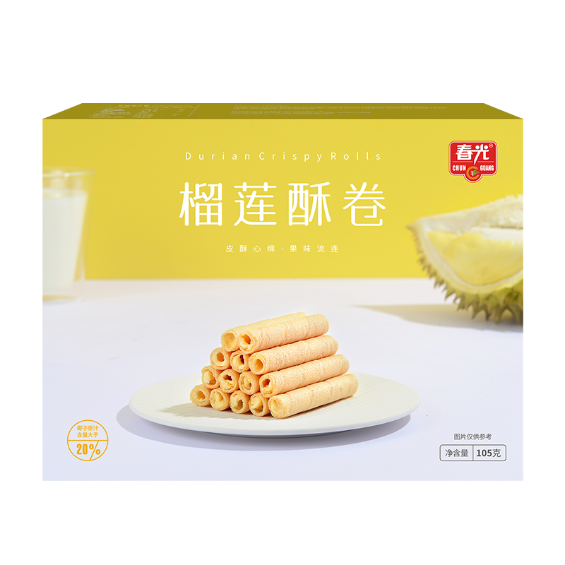 椰子原汁(25%)、小麥粉、人造奶油、植脂末、白砂糖、榴蓮粉(5%)、植物油、蛋黃粉、大豆磷脂、單,雙甘油脂肪酸酯、黃原膠、果膠、D-異抗壞血酸鈉。