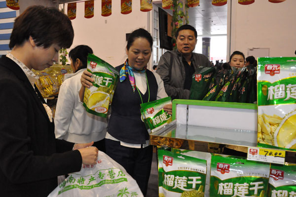冬交會是農產品交易、農業合作以及海內外客商相互交流的重要平臺。今年冬交會,依然在位于西海岸的海南國際會展中心舉行,距離市中心比較遠。但相比去年,本次冬交會則是熱鬧非凡,前來參加冬交會的人絡繹不絕,除全國各大批發市場老總、采購商和運銷商外,還有俄羅斯、印尼、新加坡、臺灣、香港等多個國家及國內其他地區的客商和游客,??诒镜氐氖忻瘢约叭「魇锌h趕來的農民。春光食品的展位前四面八方的客人每天都川流不息,其中很多都是外地的客商,他們紛紛表示:既然來了展會,又豈能錯過海南第一手信——春光。
