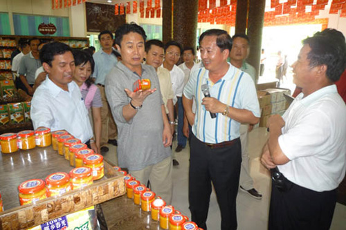 羅保銘省長等一行抵達我廠后,先后參觀了椰子粉生產車間、糖果生產車間、辣椒醬生產車間、產品展銷廳等,省長每到一處都仔細聽取匯報,了解車間的生產情況、產品的銷售情況以及公司發展過程中遇到的困難。