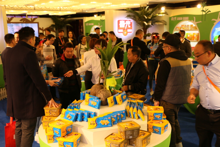 在本屆糖酒會上,春光食品攜旗下新品可麗思系列餅干——椰子千層酥、椰子蝴蝶酥、椰子曲奇、椰子巧克力曲奇、椰子巴旦木曲奇以及菠蘿蜜果干、菠蘿蜜初果干、香蕉干、原味椰子脆片、芒果味椰子脆片、椰子味爆漿果心球、芒果味爆漿果心球等具有海南特色風味的休閑食品參展,陣容強大、產品眾多,贏得了現場觀眾、經銷商和采購商們的一致好評。